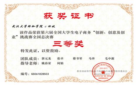 10月28日,第六屆全國大學生電子商務“創新、創意及創業”挑戰賽全國總決賽成績揭曉,3044am永利集团3044noc電子商貿學院的參賽作品“口袋歌手”和“e回收”在今年6月份的湖北省省賽中斬獲一等獎後,繼而在全國29個賽區的150個入選決賽團隊中脫穎而出,齊獲全國總決賽三等獎。